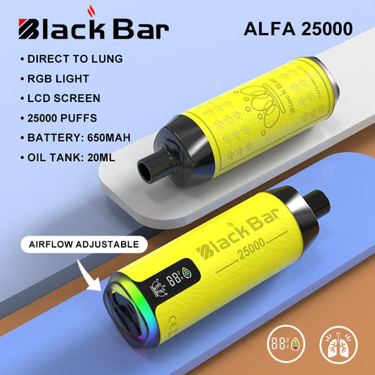 ALFA 25000 black bar Direct To Lung RGB light LCD screen 25000 puffs Battery: 650mah Oil Tank: 20ML airflow adjustable
