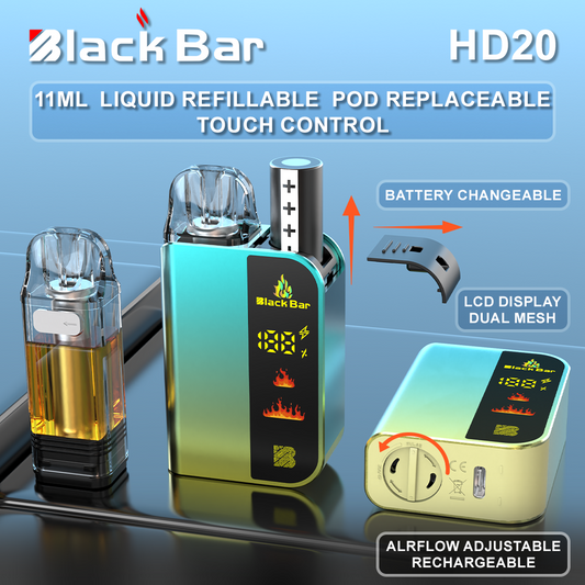Black bar-HD20 11ML Pod replaceable liquid refillable battery changeable Airflow adjustable RECHARGEABLE