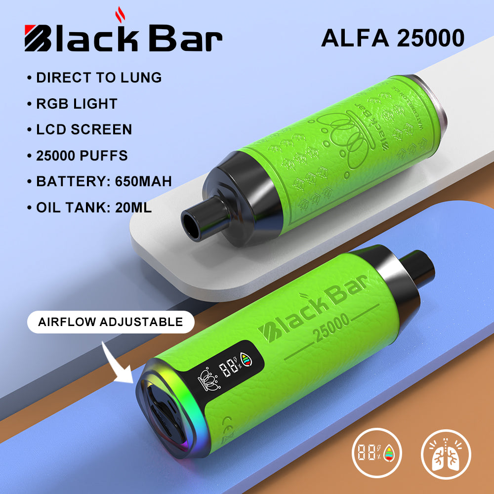 ALFA 25000 black bar Direct To Lung RGB light LCD screen 25000 puffs Battery: 650mah Oil Tank: 20ML airflow adjustable
